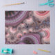 My fractal "New World" is a Mandelbrot image with cool looking shapes in muted shades of purple, pink, peach, blue and brown. Give a gift wrapped in art!