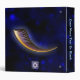 Features a fractal rendering of a shofar (ram's horn). The predominate colours are yellow, white and blue. All on a starry background. Customize by adding your own text in two places on the front, and another on the spine. For Yom Kippur or Rosh Hashanah.