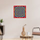 Looking at this image clockwise or counterclockwise gives the perception of motion. Changing the distance between the eyes and the image back and forth, while watching the center of the image, gives the perception of expansion of colors. You could view all of my images with optical effects at : http://www.zazzle.com/mohsenart/gifts?cg=196904589798277291
