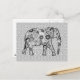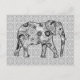 Mixed pattern digital graphic of a richly embellished elephant against an arabesque tiled background - Fractal swirl pattern in black, white and shades of grey / grey against a silver grey background