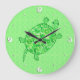 Fractal swirl turtle - lime and emerald green large clock
