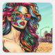 Fractured Art | Abstract Woman at Beach Square Sticker