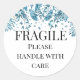 Fragile please handle with care blue/teal florage classic round sticker