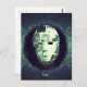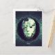 A haunting, surreal portrayal of a fractured mask suspended in a dark, ethereal void. The mask's broken, patchwork surface reflects icy textures, contrasted by a dangling monocle and a single green thread, evoking a cryptic connection to unseen forces. Beneath it, the simple yet chilling word "Hello." invites an unsettling encounter with the unknown.