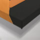 The intersection between precise abstract geometric shapes, using colour contrasts and lines to represent the duality between cosmic order and creative chaos.