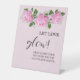Fragrant Pink Roses Let Love Glow Wedding Pedestal Sign