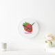 Une illustration de fraise audacieuse et éclatante, dans un style plat et moderne, encadrée dans une forme décorative de badge. Des tons rouge vif rehaussés de pépins jaunes et de feuilles d'un vert frais, accompagnés de la légende en français « Fraîcheur d'été ». Fraîche, ludique et parfaite pour l'été !