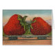 Antique Funny Giant Strawberry Train - Cette illustration de fraise est basée sur une carte postale de 1911 qui montre deux fraises géantes — expédiées à travers le pays dans un train. Les fraises sont plus grandes qu'une maison ! Ce sont de véritables fraises géantes, destinées aux géants qui vivent quelque part dans les confins de l'empire du roi des fraises ! Les fraises sont de la taille d'une maison, des baies rouges vifs, et sont assis sur un lit plat de train, roulant sur la voie ferrée.