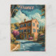 Step into a bygone era with our travel ad design featuring a vintage house nestled in the picturesque landscapes of France. This classic piece invites you to experience the timeless charm of French architecture and the tranquillity of rural living. Immerse yourself in the allure of a vintage house, where history meets elegance in the heart of the French countryside.