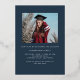 Cette faire-part/invitation à la remise de diplômes élégante présente un cadre en papier réel autour d'une seule photo sur un arrière - plan bleu foncé. Le mot "diplômé" est aussi un papier d'aluminium. L'arrière de la carte a de l'espace pour une deuxième photo.