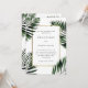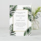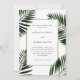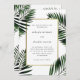 Des feuilles de palmiers à l'aquarelle tendance avec un cadre en faux or élégant et un arrière - plan blanc simple et propre, font de ce faire-part de mariage chic parfait pour un mariage moderne.