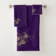 Cadre ovale violet et or élégant faux parties scintillant tourbillonne avec une couronne. 3 initiales personnalisables monogramme. Le détail de la parties scintillant est simulé dans l'illustration, et aucune parties scintillant réelle ne sera utilisée pour fabriquer ce produit.