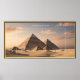 Great Pyramids of Giza, sunset, pastel colours, minimalist style, clean lines, light and shadow.