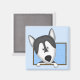 This big grey and white Alaskan Malamute cartoon has his head sticking up from inside a blue dotted picture frame, his legs resting casually along the ledge. Extremely cute Alaskan Malamute magnet is perfect for anyone that adores this large working sled dog.