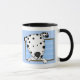 Our cute Dalmatian mug has the famous spotted dog drawn as a cartoon! His head is slightly at an angle as he looks out curiously. The frame's background is blue striped. His black and white paws are on the edge of the picture frame. Unique Dalmatian gifts featuring your favourite dog breed. This design is available on other dog lover merchandise too.