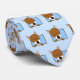 This really cute Shiba Inu tie has the cartoon foxxy dog poking his head out of a light blue polka dotted frame, his paws dangling over the edge. His head is tilted slightly. Novelty dog lover gift, great for dressing up your suit!