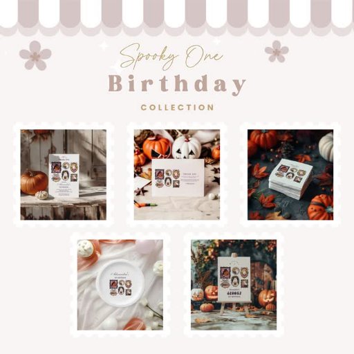 Celebrate your little one's first birthday with this darling Halloween invitation featuring framed vintage-style illustrations of black cats, sweet ghosts, pumpkins, and potions. Each character is nestled inside ornate frames with soft cottagecore details, giving this design a timeless, whimsical charm. With blush pinks, warm oranges, and delicate hand-drawn textures, this cozy fall party invitation is ideal for October babies and stylish parents alike. Customize with your event info for a hauntingly adorable keepsake.