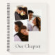 The "Framed & Layered Story" notebook journal is an overlapping photo trio ivory cover taupe detail journal. Features stacked photo-snapshots with soft washi tape accent and “Our Chapter” serif text. Minimal, memory-inspired design with warm neutral tones and subtle storytelling layout.