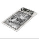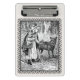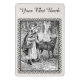 This mini clipboard has a vintage black and white illustration of little red riding hood in her hooded cape talking to the wolf under trees in the woods in an ornate black frame. Customize the text on the back with the template.