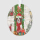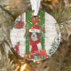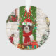 French Springer Spaniel Dog Noël assis à l'extérieur de la maison décorée avec la couronne de Noël, le sapin de Noël est une idée cadeau de Noël parfaite pour les amoureux de les chiens.
