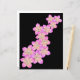 Présente des fleurs frangipani rose et jaune dessinées à la main sur un arrière - plan noir.