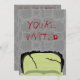 Bring your party to life with this invitation with my original digitally created Halloween design. The top third of Frankenstein's monster's yellowish-green head with all it's slashes and stitches peeks up from the bottom edge of the card. Behind the monster is a grey cobblestone wall. Above his head in a red, spooky font it reads "You're invited" The back of the card shows an example of what your finished invitation might say. This invitation is fully customizable for you to easily make it your own.