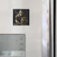 The portrait on the magnet is a careful rendition of the creature's features, emphasizing the greenish-gray complexion that hints at the amalgamation of different body parts. Stitching lines traverse the face, providing a textured and detailed representation of the monster's patchwork construction.