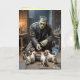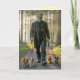 A cute dog greeting card featuring Frankenstein's monster walking his small dogs in a forest.