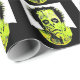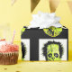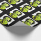 Frankie's Bad Hair Day wrapping paper: This design is my own modern take on Frankenstein's monster. As you can see he seems to be having a bad hair day. The design is done in differing shades of green, yellow and black with football stitches and staples running across Frankie's bewildered head. this makes for a funny and unique design for your gift wrapping.