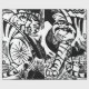 Woodcut print from 1912 showing abstract black and white tigers in a jungle setting.