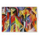 This Cubism animal masterpiece titled, Stables is made by the famous painter, Franz Marc using oil on canvas in 1913. He was a founding member of Der Blaue Reiter , a journal whose name later became synonymous with the circle of artists collaborating in it.