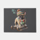 Französische Bulldogge macht eine Schlittenfahrt im Schnee. Dieser Winterurlaub scheint perfekt zu sein. Mit Pudelmütze, Schal und warmer Kleidung beginnt die Rodelfahrt im Gebirge für den kleinen Hund. Traumhaft lustiges Motiv einer kleinen Dogge.