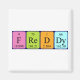 Freddy spelled out as F Re D Dy (Fluorine Rhenium Deuterium Dysprosium) on a magnet for the scientist in you.