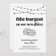 Free Burgers (at our new place!). Enjoy a fun housewarming invitation that puts the spotlight on... burger! Artwork is hand drawn.