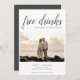 Beach destination save the date cards are for the fun couple who can't wait to share their wedding date with their family and friends. Funny "Free drinks (and we're getting married) design in grey script is customized with your photo, names, wedding date and location.