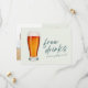 The front features a glass of beer and a ""Free drinks (and we're getting married)" typography design. Customize the back with your photo and wedding details.