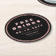 Free Drinks Funny Save The Date Rose Gold & Black Round Paper Coaster