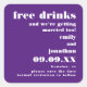 Free Drinks Getting Married Purple Save The Date Square Sticker
