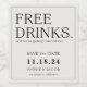 Fun and casual Save the Date announcement featuring "Free Drinks" in a fun script. Announce to your friends and family that you are getting married! Customize with your information and photo.