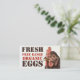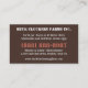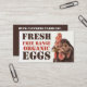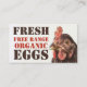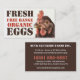 Here's an eyecatching business card for egg producing chicken farmers! A vivid rusty orange coloured Rhode Island Red heritage point of lay hen, with sharp untrimmed beak as birds usually are kept when in a spacious, free range, family farm type setting and not in an overcrowded commercial eggery. Rich brown and orangey red coloured stencil crate style lettering announces that you have fresh organic free range eggs, and the reverse side has numerous text fields for you to customize with your own personal and business information. This is the standard sized business card. Other sizes and designs available in the store. www.zazzle.com/countrycorner