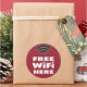 Free WiFi Here sticker with fun font and WiFi icon. Change the background colour if you like. Alert customers that free internet service is available in your business.