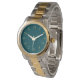 You will show off your good taste wearing this dark green-faced watch with gold-coloured numbers.