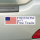 Freedom is an American value. But Freedom Isn't Free Trade. "Free Trade" is a euphemism, a misnomer for a practice that robs workers of their freedom to organize, that subjects overseas factory workers to poisoning and low pay and harassment and even at times forced labour. Freedom is many things, but one thing it ain't is Free Trade. Fair Trade keeps commerce going while preserving workers' rights. Support Fair Trade with this bumper sticker on your car.