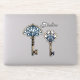 2 keys, bronze and blue. The text is customizable.