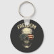 Skull with aviator sunglasses reflecting stars and stripes, edgy distressed design, bold freedom-themed typography, black background