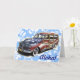 This original illustration of a vintage woody station wagon is combined with an American flag making this the perfect surfing automobile. It is showcased on a backdrop of a hibiscus floral print from a vintage Aloha shirt. Customize this card for your next luau, BBQ, party or with any greeting.