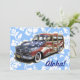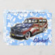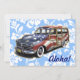 This original illustration of a vintage woody station wagon is combined with an American flag making this the perfect surfing automobile. It is showcased on a backdrop of a hibiscus floral print from a vintage Aloha shirt. Customize this card for your next luau, BBQ, party or with any greeting.