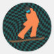 Freeride Snowboarder In Orange Suit Chequered Classic Round Sticker