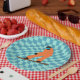 Freeride Snowboarder In Orange Suit Chequered Paper Plate