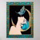 I have taken this French Art Deco picture called - Butterfly Kiss and added an art deco surround in Teal and Copper. This makes a beautiful art deco poster. This poster would look lovely as a print that could be framed. It would look lovely in any art deco themed home. It could also be used in craft. Choose your size from the side menu.